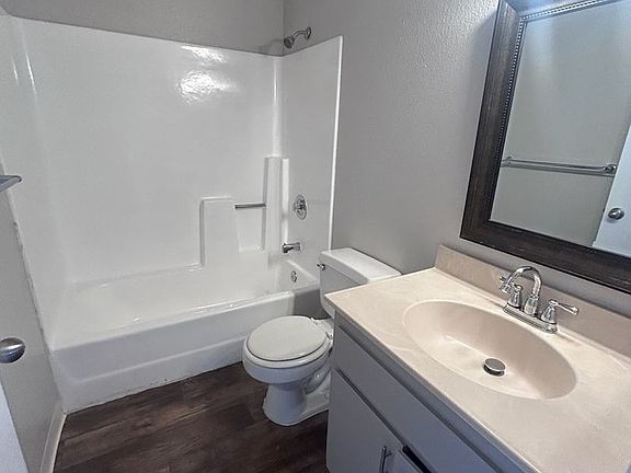 Updated vinyl in bathroomNew paintPrivate enclosed back patioGray shaker cabinetsStainless-steel appliancesLuxury vinyl plankLarge bedrooms