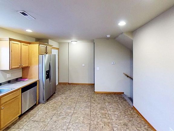 This three-story triplex unit features four bedrooms and two and a half bathrooms. The home includes a living room, den, and a utility room equipped with a washer and dryer. The kitchen boasts top-of-the-line stainless steel appliances, including a double-door refrigerator, built-in microwave, gas stove, oven, and dishwasher. It also has hardwood floors, a garbage disposal, and ample storage with a large pantry.
