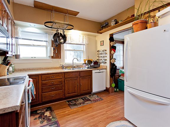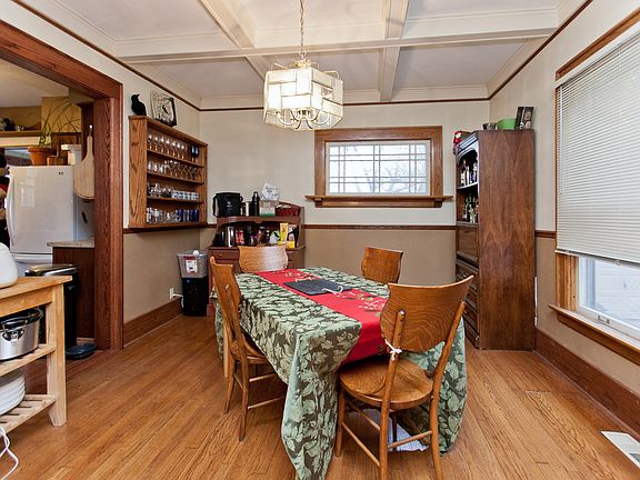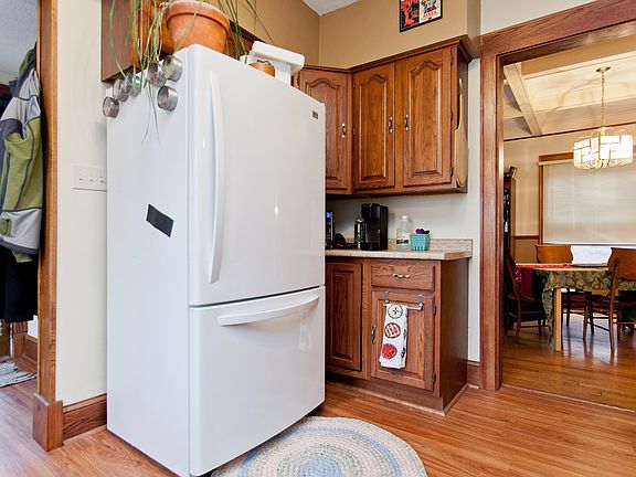 Spacious 2.5-story home w/ loads of character & a huge, 2.5 stall garage (26'x22')! Enjoy the large formal dining room. Kitchen is updated w/ beautiful oak cabinetry with 2 lazy Susans, pull-outs, dishwasher, refrigerator, stove, microwave (new to be installed prior to closing), garbage disposal, & cable jack for wall-mount TV. The 2nd level boasts 4 rooms & a 2nd full bathroom. The front bedroom has lovely oak accents & built-ins. Two large closets & crown molding in the large master bedroom.