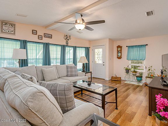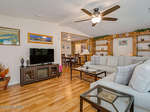 Pride of ownership shines through in the 2 bedroom, 2 bath manufactured home. You will enjoy the ample parking when you arrive. 1 car carport plus 2 car driveway. Upgrades galore. Outback you have a fenced yard with a private above ground pool. As you enter you will find a large living room with cathedral ceiling and built ins. Open kitchen overlooks dining room and family room. Inside laundry room just off the kitchen. Large master comfortably holds a king bedroom suite, remodeled bathroom & his/hers closets. The guest suite has a walk-in closet and Jack-N-Jill bathroom. A full update list attached to MLS, here are just a few: 2017 AC & metal roof, hurricane rated windows & doors. No HOA, you own your land. There is a clubhouse you can join if you wish at an additional cost.