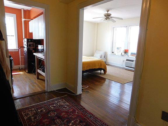 Studio, Kalorama/Dupont Spacious, charming unit on upper floor with southern exposure. Separate kitchen, walk-In closet, many windows. Building features a roof deck and laundry facilities in basement. EXTRA INFO This apartment for rent in the Schuyler Arms is ideally situated between Adams Morgan and Dupont Circle. Built in 1927, the building radiates Old World charm, and the marble lobby has a full service front desk. The unit features: -Large living space has brand new windows facing south and west. -Hard wood floors throughout the apartment. -Spacious galley kitchen with original cabinets and dish drain sink. -Classic white tile bathroom. -Built in dresser and shelves in walk-in closet. -Radiator heat. -Option to rent lightly furnished as seen in the pictures or unfurnished.