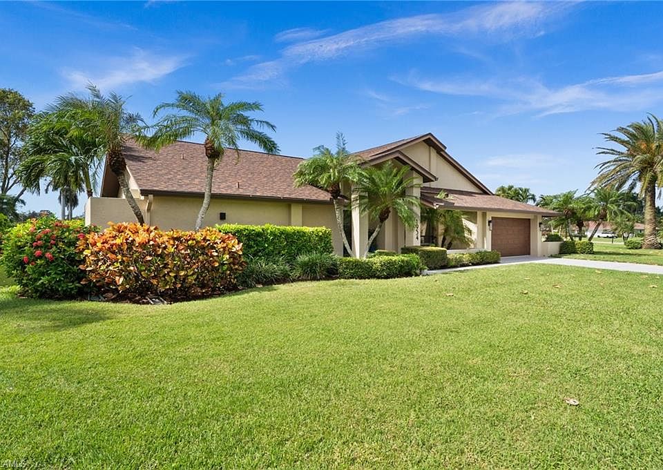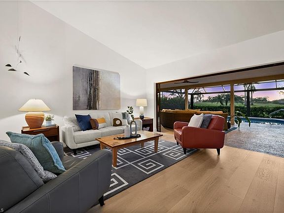 Seller Accepting Back Up Offers. Welcome Home to this beautiful, fully renovated 3-bedroom, 2-bath pool home with a den or optional 4th bedroom in Imperial Golf Estates. Offering panoramic golf course views, this residence is a true gem. As you enter through the grand foyer, you're greeted by the elegance of 9" oak engineered hardwood flooring that flows seamlessly throughout. The updated kitchen is a chef's delight, featuring a large center island, breakfast bar, and an abundance of beautiful custom cabinetry, along with stainless steel appliances. The spacious split bedroom floor plan boasts vaulted ceilings, generous bedrooms, a separate family and living room, and a formal dining area. In addition, plantation shutters and shiplap wall accents add a touch of sophistication to the home’s design. Situated on a lush, large western exposure lot, this property offers the bonus of stunning lake views from the front of the home, where you can enjoy serene sunrises, and captivating sunset views across the golf course in the rear. Essential updates include a newer roof, AC, hot water heater, hurricane-rated garage door, and hurricane shutters, providing both convenience and peace of mind. Residents enjoy low HOA fees, with access from US 41 and Livingston Road, and optional club membership. This move-in-ready home is an incredible opportunity to own your slice of paradise. Don’t miss out!