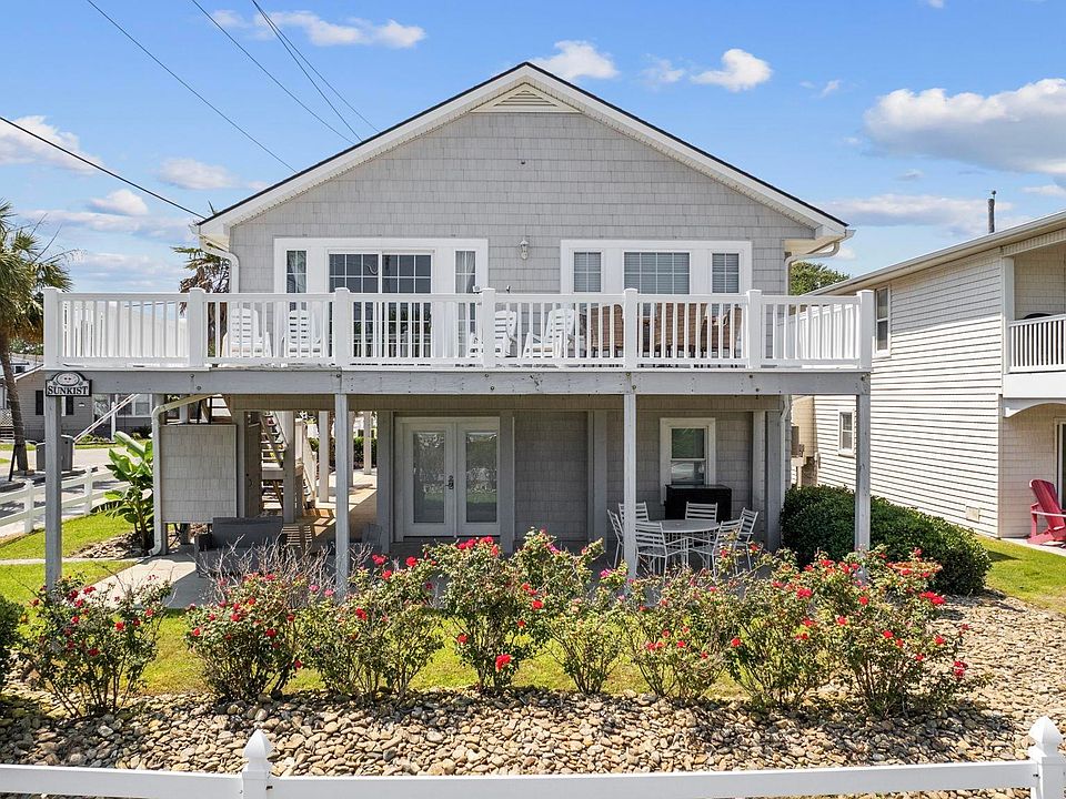Imagine EACH MORNING starting your day with a Carolina Sunrise & DIRECT VIEWS of the ATLANTIC OCEAN with YOUR COFFEE CUP IN HAND. This turnkey 5 BEDROOMS 3 FULL BATHS FULLY FURNISHED DOWN to the DISHES BEACH HOME is located in the GATED RESORT Community of Oceanside Village in the heart of Surfside Beach. NEW ROOF in 2022 w/ 25 YEAR TRANSFERABLE WARRANTY and FRESH LANDSCAPING. The layout offers many options as you have TWO SEPARATE LIVING SPACES including, UPSTAIRS- 3 BEDROOMS& 2 FULL BATHS; a FULLY REMODELED KITCHEN with ALL NEW CABINETS, OVERSIZED SINGLE BASIN SINK, NEW LIGHT FIXTURES and WHOLE HOUSE WIFI/SMART HOUSE LIGHTS makes life a Breeze. NEW LVT FLOORING with FRESH TRIM and MOLDINGS with NO CARPET make cleaning quick and easy beachside. One of the 3 bedrooms has a BUILT- IN MURPHY BED and SHELVING that can be used as an OFFICE/FLEX SPACE or BEDROOM for guest, You'll also find access to a 3RD FLOOR SPACE*. Head Downstairs you'll find a FULLY FURNISHED SEPARATE 2 BEDROOM & 1 FULL BATH Dwelling with NEW STAINLESS STEEL FRIDGE & DISHWASHER PROVIDING ENDLESS OPPORTUNITIES with the ABILITY to SHORT-TERM RENT! PERFECT FOR THOSE WHO WANT AN INCOME PRODUCING PROPERTY or LIVE IN ONE UNIT and RENT the OTHER OUT TO COVER IT. THE HOA HANDLES the LANDSCAPING WATER & IRRIGATION making EXTRA OUTDOOR TIME available, AMPLE ATTACHED STORAGE for beach items and a large OUTDOOR SHOWER make perfect for after a long beach day. Don't forget to enjoy some CONCH FRITTERS from THE FAMOUS CONCH CAFE across the street. The community of Oceanside Village offers an array of amenities for everyone including; INDOOR &OUTDOOR POOL and KIDS SPLASH PAD, Bark Park for FURRY FAMILY MEMBERS, Bocce Ball, Tennis courts, Playground, PRIVATE BEACHFRONT PARKING, FITNESS CENTER, Baseball Field, Volleyball, Library and COMMUNITY CENTER. THE ONLY THING MISSING IS YOU and THE MEMORIES YOU'LL CREATE.