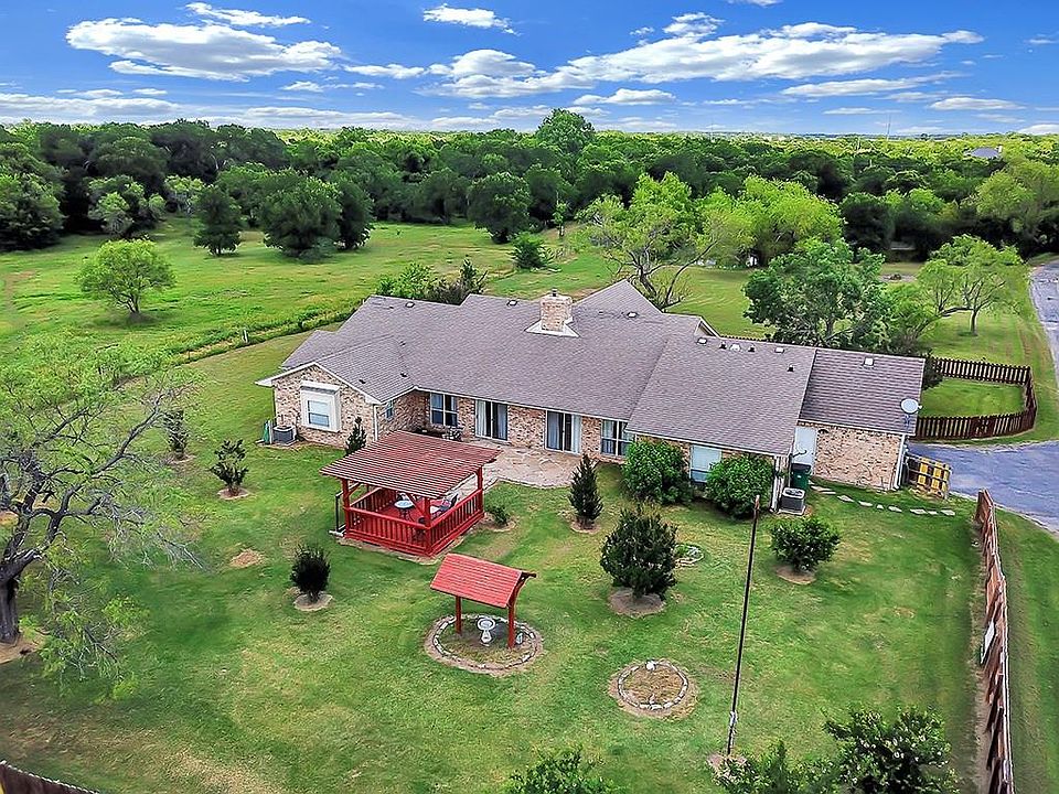 Rare find in Rockwall county, secluded feel brick home with heavy metal entry gate on approx. 11 acres w-AG exemption, 2-stall barn & shed, 40x30 workshop-apartment w-shower & kitchenette, 20x24 metal bldg, covered metal structure for RV-boat parking. Enjoy morning coffee-tea on the sprawling front porch overlooking tranquil stocked pond with large mouth bass. RECENT UPDATE: AC unit,water heater,newly painted interior & exterior, laminated wood floors, extensive Mexican Saltillo tile floors, double sided masonry fireplace, privacy fenced-in backyard w- gazebo & expanded patio for entertainment. Lots of potential & possibility for a great estate orranchette close to Rockwall & all the urban convenience.