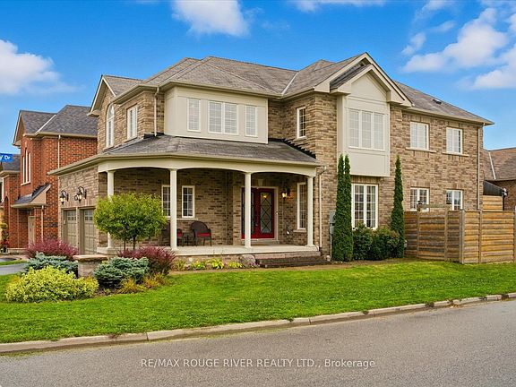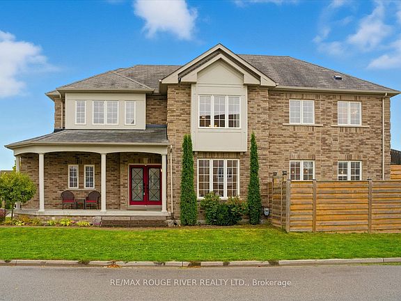 Welcome to 1954 Riverton Street, a beautiful corner lot home built by Greycrest Homes and ideally situated in one of North Oshawa's best pockets. With over 3000 total sq ft, this property stands out with its elegant curb appeal, sun-filled interiors, and modern upgrades throughout.Step inside to discover an open-concept layout featuring soaring 18 ft cathedral ceilings that create a striking first impression. Hardwood floors flow seamlessly throughout the home, while 9 ft ceilings on the main level enhances the airy, spacious feel. The abundance of windows along the north side floods every room with natural light, recently upgraded with California shutters, creating a warm and inviting atmosphere. The main floor offers a perfect balance of function and style - featuring a large formal dining room ideal for family gatherings and special occasions. Complete with a cozy gas fireplace in the living room and open sightlines to the modern kitchen, making it perfect for both family time and entertaining. From the kitchen, step out to your custom-built deck, complete with built-in furniture, a fire table, and ample storage in the large shed - the perfect outdoor retreat for relaxing or hosting gatherings. Upstairs, you'll find four generously sized bedrooms, including a luxurious primary suite with a 5-piece ensuite, featuring a corner soaking tub and separate shower.The professionally finished basement offers even more living space with a modern open-concept recreation room, a sleek dry bar, and a rough-in bath ready for your personal touch. Ideal for a home theatre, games room. Located just 2 minutes away from top-rated schools and parks. Conveniently situated close to shopping, and major highways, this home combines elegance, comfort, and convenience in one perfect package.