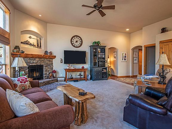 - Breakfast Bar, Pantry, Shower/Tub Combo, Tile Counters, Double Vanity, Ceiling Fan(s), Kitchen Island, Laminate Counters, Vaulted Ceiling(s), Open Floorplan, Wired for Sound