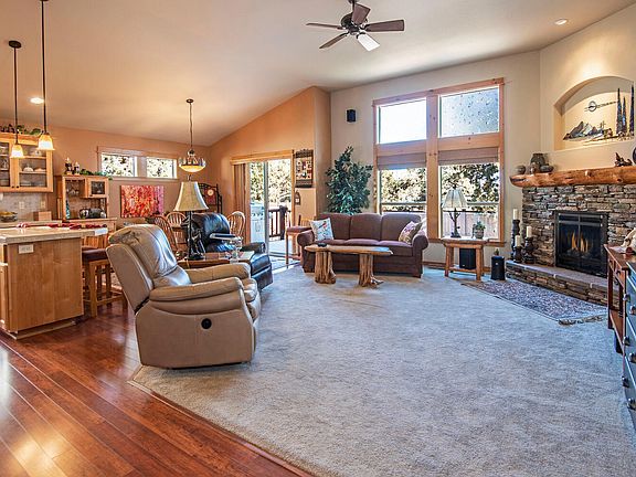 Beautiful NW style home is builder's personal home located in desirable neighborhood in Redmond. Home is single level with Alderwood cabinets throughout, laminate wood flooring, tile and slate, great room concept, natural gas fireplace with real rock accent and large windows overlooking landscaped back yard. Kitchen is spacious with natural gas range, oven and warming drawer. There is an abundance of storage, pull out drawers, large walk-in pantry and great dining area for entertaining. Master bedroom has sliding door leading out to privacy deck, hot tub. Additional bedrooms are separated from master. Garage is 24x24 with a 200 sq.ft. finished shop. Perfect for the wood worker or artist. Front and back yard are beautifully landscaped with pop up sprinkler system. Back yard is fully fenced with a nice wooden garden shed.