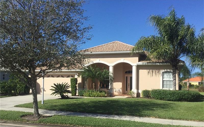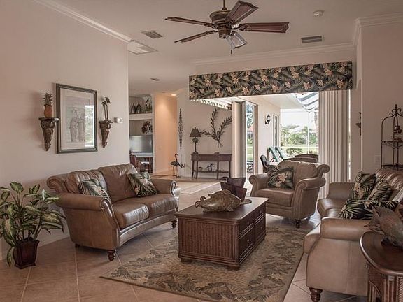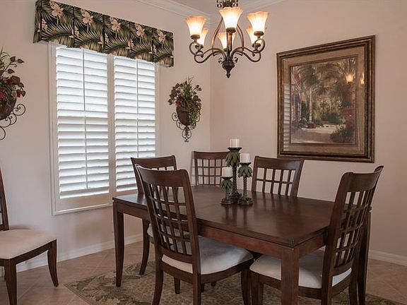 WHAT A BEAUTY! THIS LOVELY 3 BEDROOM 2 BATH HOME WITH BOTH FORMALS AND FAMILY ROOM OVERLOOKS A POND IN DESIROUS BOBCAT TRAIL NEIGHBORHOOD. MASTER HAS EN SUITE WITH DOUBLE SINKS, GARDEN TUB AND SEPARATE SHOWER AS WELL AS SPACIOUS CLOSETS. SECONDARY BEDROOMS BOTH HAVE AMPLE WALK IN CLOSETS. GUEST BATH OPENS TO THE POOL AREA. 10 FT. CEILINGS AND CROWN MOLDING THROUGHOUT HOME. THE 90 DEGREE SLIDERS OPEN ONTO A LARGE LANAI AND HEATED POOL. COMMUNITY CENTER HAS GYM FACILITY AND AN ABUNDANCE OF SOCIAL ACTIVITIES FOR YOUR ENJOYMENT. GOLF MEMBERSHIP IS OPTIONAL. FROM THE TIME YOU ENTER THE FRONT DOOR YOU WILL SEE THE PRIDE OF OWNERSHIP. FURNISHINGS ARE AVAILABLE FOR PURCHASE. THE CDD FEE IS INCLUDED IN THE TAX AMOUNT AND IS PAID ON THE ANNUAL TAX BILL.