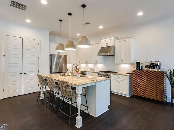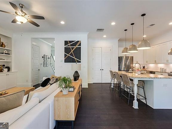 Nestled at 1954 Westside Boulevard NW, Atlanta, GA, this residential property presents an attractive opportunity to own a home in great condition. The living room stands as an inviting space, featuring built-in shelves perfect for showcasing treasured items, while crown molding adds a touch of sophisticated elegance; the fireplace serves as a warm and welcoming focal point, ideal for gatherings. In the kitchen, culinary dreams become reality with a high-end range oven ready to assist in the creation of culinary masterpieces, while stone countertops offer both beauty and durability; the large kitchen island provides ample space for meal preparation, and the shaker cabinets, coupled with a stylish backsplash and crown molding, create a visually appealing aesthetic, and the kitchen bar is great for entertaining. This home offers a blend of indoor and outdoor living with its sunroom and balcony, allowing residents to enjoy the beauty of the surroundings from the comfort of their own home; the open floor plan promotes a sense of spaciousness and connectivity. There are four bedrooms and three and a half bathrooms. With 2862 square feet of living area, this home, constructed in 2020, also features a porch. Westside Station offers a warm, community-oriented atmosphere featuring amenities like a clubhouse, playground, and pool. The active HOA hosts engaging neighborhood events. Enjoy the charm of true neighborhood living with convenient access to Westside Village, Publix at Moores Mill, and soon, a direct connection to the BeltLine and Silver Comet Trail via the Whetstone Creek Trail. This Atlanta property offers a wonderful opportunity to experience a comfortable and stylish Intown lifestyle.