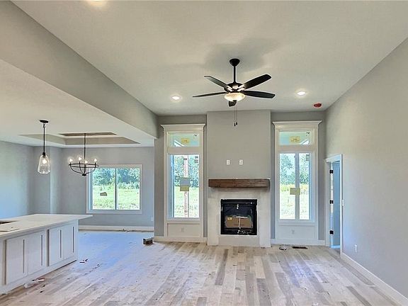 The McKinley Cottage by First Choice Custom Homes on a WALK-OUT LOT! This fabulous reverse 1.5 story plan features beautiful finishes and thoughtful touches throughout. Bright open main living area features real hardwood floors, vaulted ceiling, and fireplace with chunky mantle flanked by stunningly large windows overlooking the covered deck. Spacious dining area with box vault detail flows seamlessly into the kitchen with custom cabinetry, large island, pantry, and stainless steel appliances. Rounding out the main floor are the Owners suite oasis, complete with tray ceiling, transom windows, & barn door, along with the secondary main floor bedroom with vaulted ceiling, perfect for office or guests. In-ground sprinkler system. Finished lower level features large family room area, ample windows, and walk-out to covered patio, 2 additional bedrooms, full bath, and so much more! Become a part of this fantastic community & enjoy great neighbors, our beautiful pool facility, resident center, ever expanding green space, park space, & Spring Hill's award winning schools!