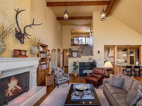 Architect-designed home on the 17th green at Broken Top, sited to provide privacy & peacefulness w/ lake & fairway views. Spacious home w/ European flair; high-quality finishes & beam work throughout. Inviting great room w/ high ceilings opens to casual dining & well-equipped kitchen w/ Wolf 6-burner range, secondary oven/microwave & Sub-Zero fridge, wet bar & wine fridge. Around the corner lies intimate dining room & temp/humidity controlled wine room. Main level master suite w/ vaulted ceilings & lovely views. Spa-worthy bath w/ air bubbler soaking tub & shower w/ dual heads. Heated floors w/ double vanities & closets. Main level office w/ French doors & built-in bookshelves. Upstairs, an open library loft leads to 2 en-suite bedrooms & 3rd bedroom currently used as a flex/media room. Upper deck w/ scenic treehouse views. Natural light from many well-placed windows provides views of golf course & wildlife. Security system & built-in speakers. 3 car garage w/ cabinetry & epoxy floors