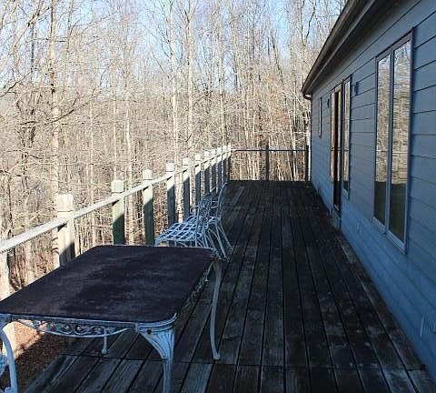 Plenty of possibilities with this 20+ acre wooded lot located in the Hocking Hills region. Main home features 2 bedrooms, 1 1/2 baths, living & family room, eat-in kitchen, 1st floor laundry & sun room with walkout deck that runs the length of the home all on entry level. Partially finished walkout lower level with possible large 3rd bedroom & full bath, workshop area & 2 car garage. A wood deck off the main level connects to another 24x24 guest house that offers 1 bedroom, full bath, kitchen & living area with wood burning stove & 2 car garage below. Both properties are approx, 80-90 % complete with majority of the materials needed to complete homes are on site. & included in the sale. Great opportunity to put the finishing touched on your home , weekend retreat or rental.