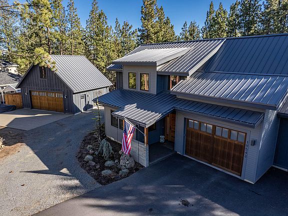 Stunning custom home on a large lot in a desirable neighborhood on the path to Mt. Bachelor, hiking, mountain biking, and the Cascade Lakes. Built with the utmost attention to detail, expansive vaulted ceilings in the great room and all bedrooms, a large open kitchen is perfect for any chef. A comfortable floor plan with the primary bedroom and office downstairs, 3 bedrooms and a cozy bonus room upstairs. The southern exposure gives plenty of light all year long and the ultra private, large backyard has that ''out of town'' feel and yet you're minutes from downtown and the Old Mill. Looking for garage space? This home offers an attached 2 car garage plus a detached 2 car garage/shop with a finished flex space above. Plus plenty of space to park your toys, campers, RV's, & vans.