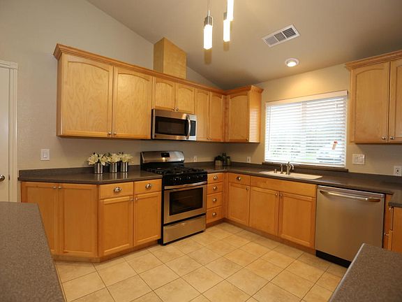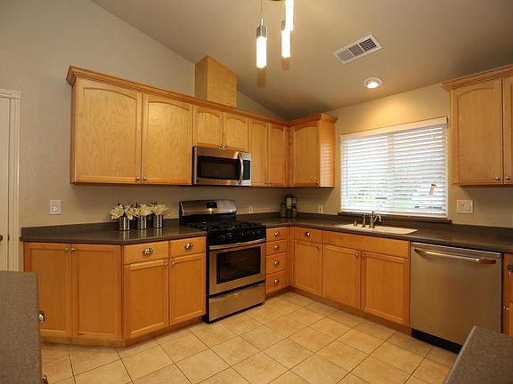 Immaculate home in beautiful Lake California. 3 bedrooms and 2 bathrooms. Vaulted ceilings, gas fireplace, whole house fan. Open kitchen with breakfast bar and new stainless steel appliances. Classy new interior paint with a modern feel. New carpet. Covered back deck with greenbelt views. 5.5 miles from I-5. Move-in ready!!