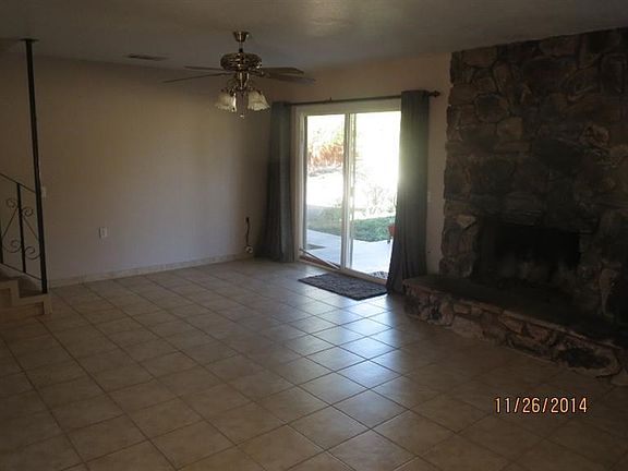 Spacious four bedroom, four bath home with oversized double car garage. Tile throughout living room, dining room, kitchen, entry and hall. Two master suites - one upstairs above the garage with a private deck, the second downstairs with an adjoining inground spa. All bedrooms are large with generous closets. Kitchen has updated cabinets and counters stainless steel appliances including built-in microwave. Large stone fireplace, covered patio, lots of privacy on this spacious one acre lot. Oversized garage has large laundry room with full bath.