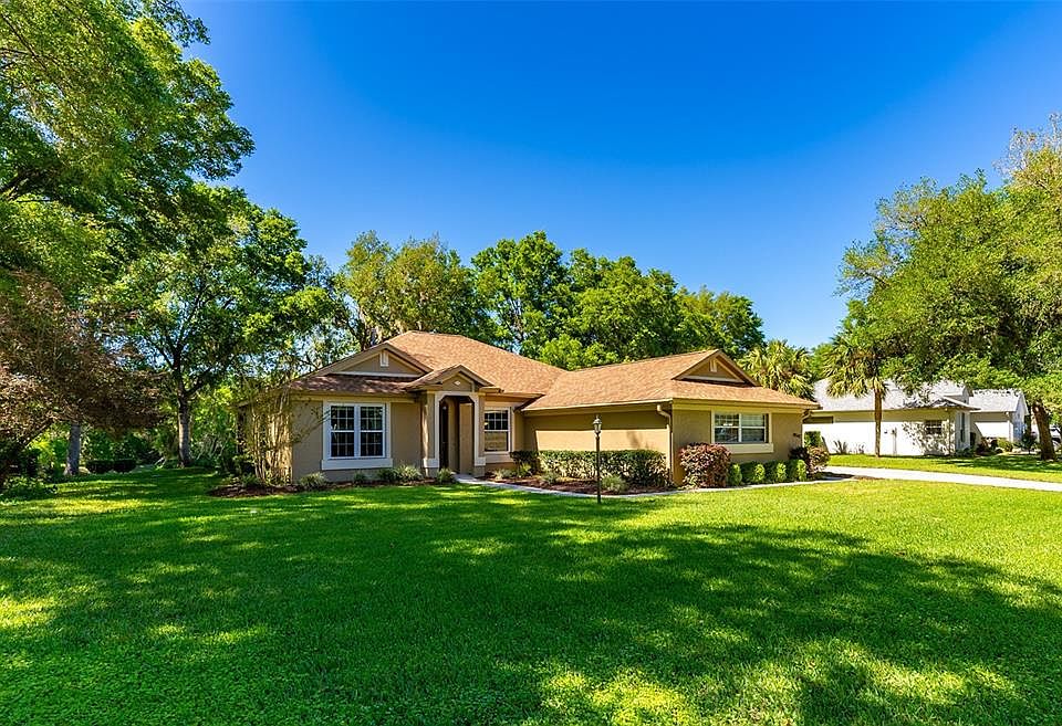 Welcome to your dream home in the highly sought-after Rainbow Springs Fox Trace community! This meticulously maintained property nestled on a beautifully landscaped .41 acre lot that offers a serene retreat with the added bonus of backing up to a 5-acre DRA for enhanced privacy. As you step inside, you'll be greeted by an inviting open floor plan with kitchen open to the living room & dining area. The layout includes thoughtful design with split bedroom plan, extra-large primary bedroom & ensuite with walk in shower & soaking tub, an enclosed lanai perfect for enjoying the picturesque surroundings, and a side entry garage for convenience. Updates abound throughout the home, including a new roof & HVAC system in 2021, ensuring years of worry-free living. New water heater and freshly painted interior & exterior 2023. The new windows installed in 2017 enhance energy efficiency. The modern kitchen is outfitted with stainless appliances installed in 2021. The interior is complemented by new wood plank laminate flooring installed in 2017, creating a perfect blend of style and functionality. Outside, the meticulously maintained lawn with an irrigation system on it's own well & fresh sod in the front yard (installed in 2023) adds to the home's curb appeal. Beyond the confines of your property, take advantage of the Rainbow Springs POA membership, offering access to a plethora of amenities including the Rainbow River, clubhouse, community pool, tennis courts, pickleball, billiards room, exercise room, restaurant, and much more—all for an incredibly low annual fee. Don't miss out on this rare opportunity to own a slice of paradise in Rainbow Springs Fox Trace. Check out the visual tour and Schedule you're showing today and make this your forever home! Assumable VA Loan at 5.5%. New buyer will have to qualify with Navy Federal.