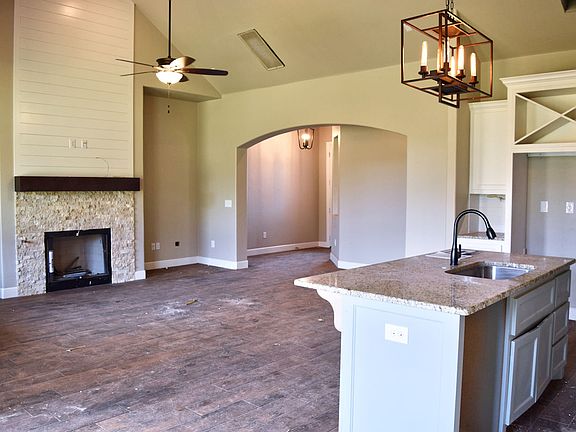 This stunning brand new home offers amazing features! The open living room boasts soaring vaulted ceilings with wood beams, wood tile floors, and fireplace with ship lap reaching to the ceiling. The chef's kitchen features a center island with breakfast bar, tile backsplash with custom insert over the gas stove, and crisp white shaker style cabinets. The private master provides a tray ceiling and crown molding, double granite vanities, whirlpool tub, walk in tiled shower, and walk in closet. Each bedroom includes a full bath en suite. This home also offers: true study, fully sodded yard, and sprinkler system.