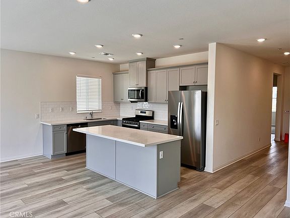Welcome to this beautifully upgraded single-story home with NO REAR neighbors! Bright and airy throughout, this residence features designer-selected wide vinyl plank flooring in the great room, kitchen, bathrooms, and hallway. The spacious master suite offers dual vanities, a soaking tub, and a walk-in shower. Two additional generously sized bedrooms each include their own walk-in closet. The home is finished with elegant quartz countertops, and comes equipped with a refrigerator, washer, and dryer. Enjoy the expansive backyard with professional landscaping perfect for relaxation or entertaining. Owned solar panels provide significant savings on electricity. Conveniently located just minutes from UCR and nearby shopping centers.