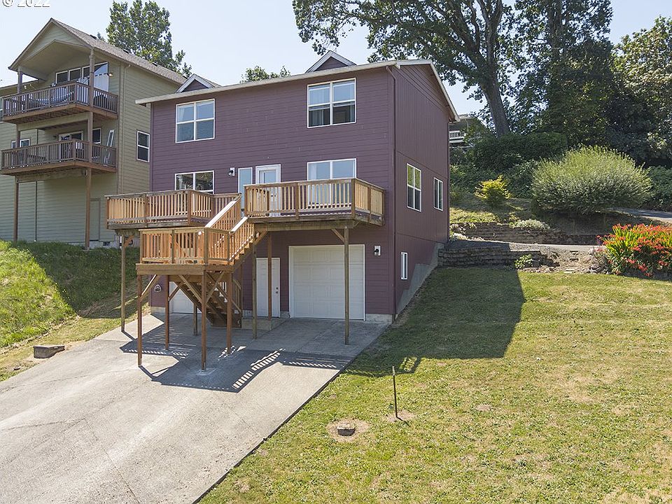 As soon as you enter this home, the view of the Columbia River will capture you! This 3 bedroom, 2 bath home offers laminate floors, stainless appliances and even a handy laundry chute! Relax on the newly updated front deck and enjoy the view! The two driveways offer extra parking space and the sloped lot makes for a fun sledding hill! Room to build some equity here if you are handy! Hard to find a river view at an affordable price, so here you go!