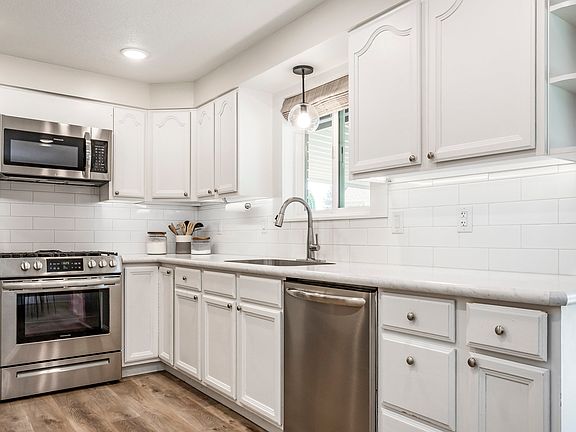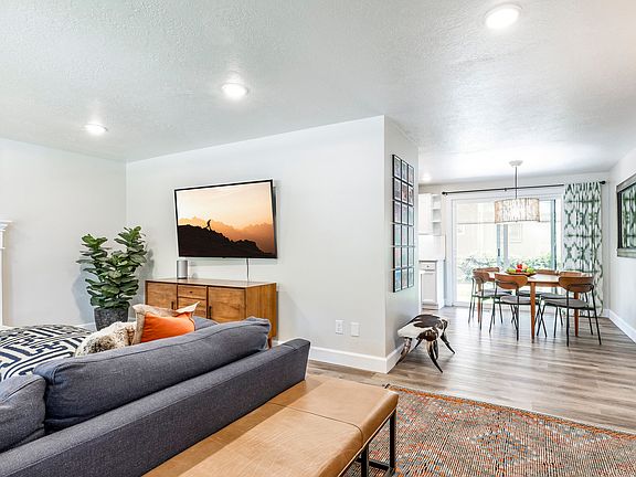 A fresh price creates a new perspective. Take a closer look at all this rambler has to offer. With multiple family gathering spaces, 2 fireplaces and 5 bedrooms that can also accommodate your home office needs, this home should not be missed. Recent renovations and upgrades include luxury vinyl plank flooring throughout, interior paint, new baseboard and door casings, stainless kitchen appliances. A primary bedroom with ensuite bathroom featuring radiant heated floors adds a touch of luxury. 2 additional full size bathrooms have also been renovated. Large windows allow abundant natural light and are fitted with custom blinds. Step out from the kitchen area to a the covered back deck and spacious .30 acre lot with fully fenced yard where you can enjoy outdoor entertaining. Lots of room for play, garden areas, and pets too! The attached double car garage with storage room, additional shed and RV parking area will surely appeal. This location is all about convenience: walk to stores, coffee shop, parks, the elementary school, convenient access to highway routes to Salt Lake City and SLC airport. Sports enthusiasts will enjoy the local bike trails and the convenient drive to world famous ski resorts located close enough to catch those early morning first runs this coming snow season!