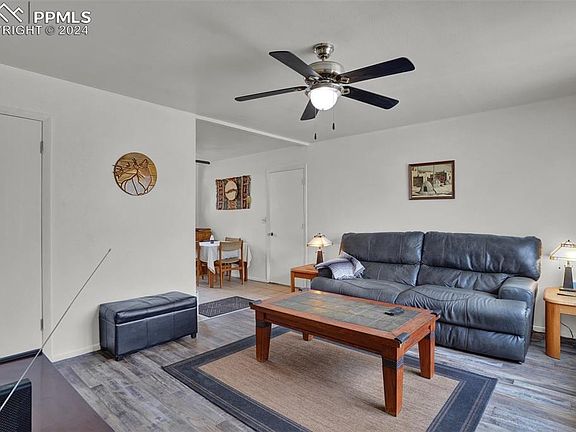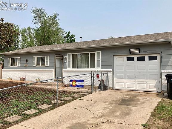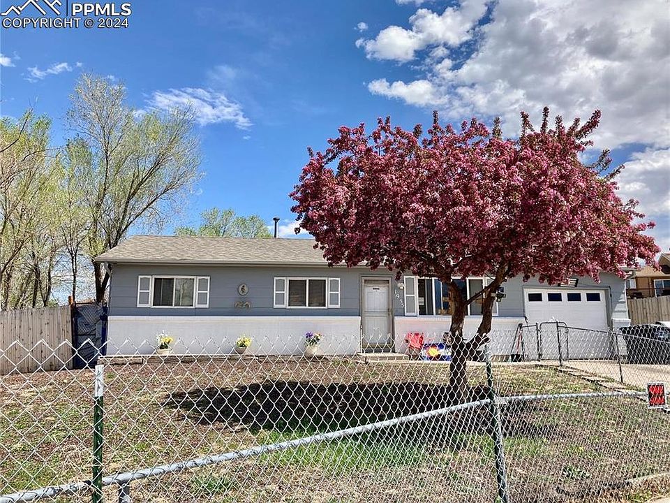Cute Rancher with 3 bedrooms, 1 bath and 1 car garage is located on a quiet street close to post and shopping. This home boasts newer laminate flooring throughout. The kitchen offers refinished cabinets with tile countertops, plus a new refrigerator in 2022 and a new stove/oven in 2023. This home includes newer roof (2021), furnace, water heater and windows. The washer and dryer (new in 2023) stay! Spacious, fenced back yard is great for kids and pets, especially since there is already a dog run. A wooden storage shed is the perfect place for your outdoor toys/equipment and all those extras. If you have an RV, there is ample space to park it. Enjoy awesome mountain views! No HOA! See it today!!