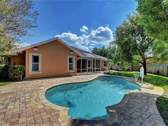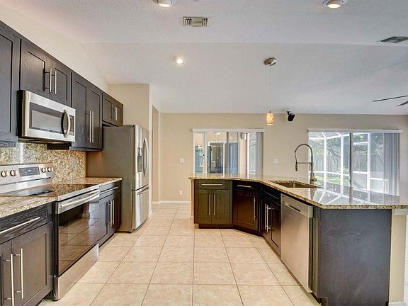 Incredible open & bright split plan 4 bedroom, 2 bath, 2 car garage pool home on fully fenced 1/3 acre tropically landscaped lot w/ gate & pad forRV, Boat, or horse trailer w/ electric hookup. New salt system heated pool, outdoor shower, hot tub hookup, extended paver patio, out door speakers, extra outlets & water fixtures, & large screened lanai. Surround sound speakers, brand new high end kitchen w/ contemporary wood soft close cabinets, granite counters/back-splash, designer hardware, new stainless appliances & under-mount sink. New A/C, washer & dryer, storm rated gar. door, accordion shutters, camera security system & more. Located in great community w/ lake front park & no HOA. Great schools, parks, amphitheater, shopping & dining. Close to Polo, equestrian show grounds, & PBIA.
