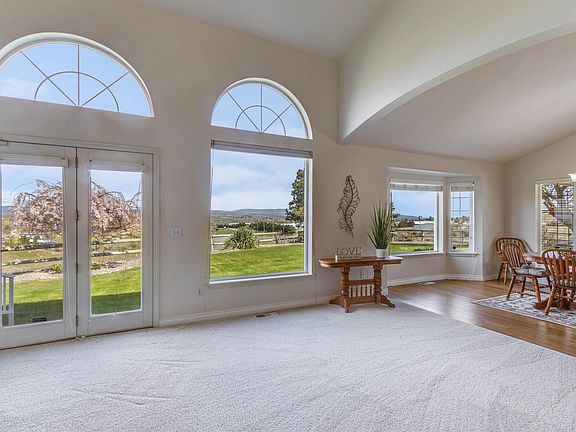 MLS# 275105 This meticulously designed custom home offers a blend of luxury, comfort and functionality - making it a perfect retreat in Washington's Wine Country. With views for miles, this home was designed for functionality & privacy. The large great room has lots of windows, vaulted ceilings, built-ins & a double sided gas fireplace. The kitchen has a large pantry, storage island w/breakfast bar & range/oven, custom painted white cabinets, granite counters and 2 cabinet storage garages; perfect for storing kitchen appliances too. A solar tube adds tons of natural light. The two guest rooms are located off the kitchen and share a guest bath. The large laundry room has overhead cabinets and a storage closet. On the opposite side of the home you'll find the formal living room/parlor with high ceilings and gas fireplace. Wide hallways & French doors have wheelchair accessibility in mind. The 17x16 primary suite has Western facing windows to view Mount Rainier & Mount Adams and a door to the private 11x5 covered patio; perfect for watching the yearly 4th of July Prosser Fireworks and the hot air balloons during The Great Prosser Balloon Rally. The primary bath has a 7x5 walk in closet, double sinks, a large jetted tub and a private water closet with a pocket door to the zero entry shower with large built in bench and toilet with overhead cabinets. Additional amenities include newer laminate flooring throughout the hallways, foyer, dining, kitchen and 1 guest bedroom, newer carpeting in the great room and primary bedroom, fresh paint throughout much of the interior, updated nickel light fixtures and more. The 24x22 attached 2 car garage is deep enough to accommodate most full size pickups. In addition, there is an HVAC room with an owned water softener, a storage room AND a workshop with an exterior door and heating & cooling for woodworking or other hobbies - maybe even a man cave?! Now let's talk about the exterior! Situated on over a half acre, there's a long driveway for tons of off-street parking & additional parking for RVs and more in the back. The 8x11 storage building is great for lawn equipment. The 26x14 covered Eastern facing patio is great for morning sunrises and shady summer evenings. With mature landscaping, partial fencing and timed underground sprinklers - it's ready for all of your Summer entertaining needs. Call your Realtor today for a showing!