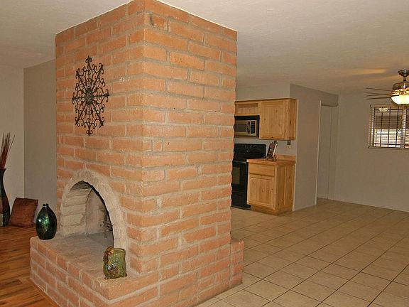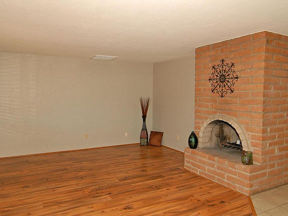 PRISTINE CONDITION! JUST RE-PAINTED INSIDE AND OUT! This classic ADOBE home with its private, walled front yard and covered front porch is just what you've been waiting for. The BURNT adobe dual, WOOD-BURNING FIREPLACE w/raised hearth sets the stage as you enter. Ceramic tile and laminate wood flooring throughout. Kitchen features like-new modern cabinets, tiled countertops, cooktop range and a skylight. Spacious rooms throughout. Separate laundry room w/ sink & additional cabinets. Plus there's a BONUS room with glass windows viewing out to the oversized back yard. 14 SEER, 5-TON HVAC system replaced in 2010. Roof COMPLETELY replaced June 2013. Oversized storage room off the double carport. Great central location offering you the comfort and convenience of being in the heart of Tucson