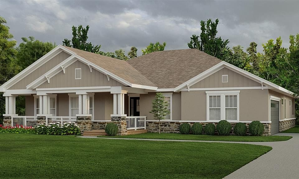 Under Construction. Welcome to the Venice Model by Spire Homes — Winner of the 2024 Home Markup Excellence Award for Best Customer Experience! Experience thoughtful design and high-quality new construction in this beautifully crafted home, offering three spacious bedrooms and three full bathrooms in a layout that seamlessly blends modern style with everyday functionality. Nestled within a gated community where every homesite sits on an oversized lot, the Venice model offers both privacy and curb appeal. Designer Kitchen Highlights: Step into the heart of the home — a chef-inspired designer kitchen featuring: Elegant wood shaker-style cabinets with 42" uppers, extended cabinetry, crown molding, and light rail Soft-close doors and drawers for added luxury and durability, Stunning quartz countertops paired with a classic subway tile backsplash, and Stainless steel undermount sink with Moen faucet and integrated sprayer for beauty and convenience. Premium Samsung stainless steel appliance package, including: Double built-in ovens (one convection/microwave), Cooktop with a chef-style hood, Dishwasher, 1/2 HP garbage disposal, and Under-cabinet lighting for added ambiance and function. The private owner’s retreat offers a spa-like bathroom with: Dual sinks and a three-drawer vanity, Oversized rectangular walk-in shower with clear glass and nickel semi-frameless surround, Separate soaking tub for true relaxation, Quartz countertops, undermount sinks, and brushed nickel fixtures, Throughout the home, enjoy upscale details such as: Karastan BelleLuxe 10mm laminate wood flooring with padding, Stylish 8-foot two-panel interior doors, OGEE 5 1/4” baseboards, Flush-mounted LED lighting, Rocker-style light switches, wood windowsills, and custom closet shelving, and All bathrooms include 12" x 24" ceramic tile flooring and tiled shower walls. The impressive exterior features: Durable fiberglass entry door with decorative glass, Professionally designed landscaping with irrigation, Two finished lanais for outdoor living, as well as Wayne Dalton steel panel garage door with automatic opener and coach lights for enhanced curb appeal. Built with modern efficiency in mind, the home includes: 16 SEER 2 Carrier HVAC system with heat pump, Honeywell Wi-Fi programmable thermostat with humidity control, 200 AMP electrical service, 40-gallon hot water heater with expansion tank, Structured data wiring and code-compliant storm protection features, and progressive lighting fixtures throughout. This home is built to impress — combining elegant design, energy-efficient systems, and exceptional craftsmanship. Don't miss your chance to own a stylish, smartly built home in a sought-after community. Schedule your tour of the Venice Model today!