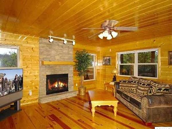 This cabin is nestled on a lovely corner lot with woods behind it for privacy. Sit on your back deck and listen to the sounds of nature. The house has 3 bedrooms, with the master being on the main level for your convenience. From the kitchen sink and table you are overlooking your wooded lot. The deck encompasses 3 sides of the house for plenty of room for outside entertaining. Gas fireplace to warm yourself on those cool winter nights. Large game room on 2nd level with lots of windows, where you can even see Mt. Leconte. This area is privy to overnight cabin rentals and permanent home owners. Wood Floors thru -out the cabin. Just the perfect spot for you Smoky Mountain Home.