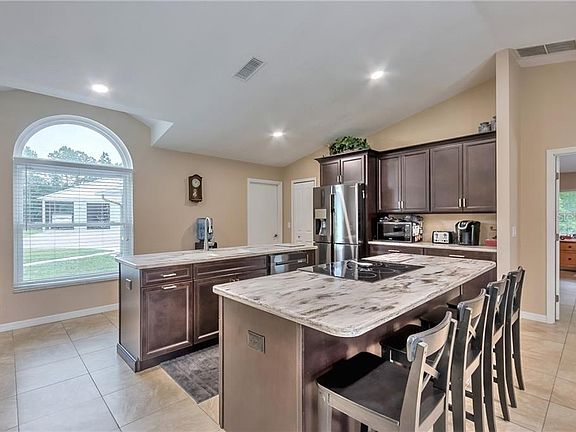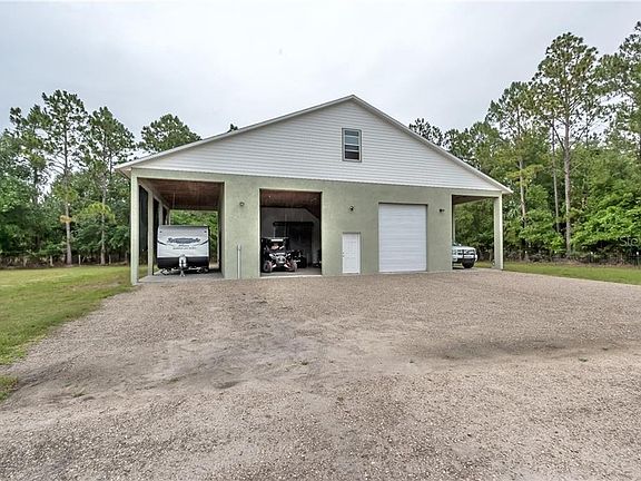 UNIQUE ! Beautiful turn-key private oasis with a pond and room for your horses, livestock, and PLENTY of room for your toys and projects in a HUGE detached garage/workshop fit for multiple RVs, boats, etc! After you're done roaming all fully fenced 5 acres, and exploring the multiple fenced pastures, or working in the spacious and fully permitted shop, shower off outside, maybe relax by the pond, or enjoy the night fireside at the firepit in the fenced backyard immediately off your spacious back porch. Kick your shoes off after and enjoy a project-free home, with full upgrades including a lifetime warranty on your hurricane-grade impact windows, NEW ROOF less than a year old, American-Made wood cabinets throughout, the list goes on! Come see your DREAM HOME with all the privacy you'll ever need!