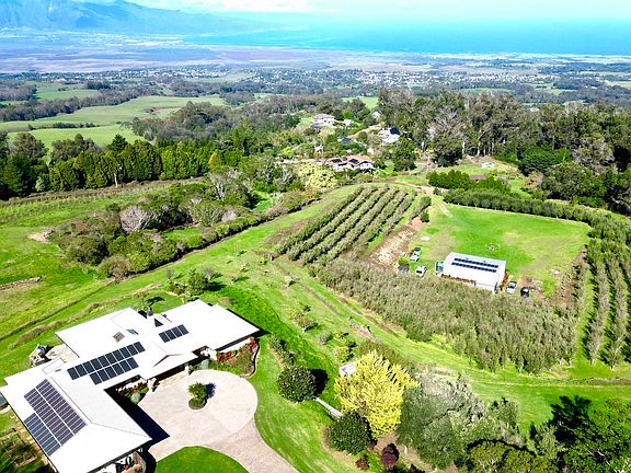 Rarely available and extremely private 12.178 acre upcountry Maui estate with absolutely stunning unobstructed bicoastal ocean and Haleakala mountain views.This exquisite estate was designed for maximum privacy, comfort and pleasure - an intimate setting to release you from all your anxieties and truly, deeply relax and connect with people you love. The property features a luxurious, custom built 3,109 sq.ft. 3 bedroom 3.5 bathroom single-level residence of top quality building materials, finishes, fixtures and custom woodwork in SHOWROOM condition. Photo Voltaic solar panels produce abundant electricity for the property enhancing Maui Electric power, and includes a 16W Northern Lights Diesel Generator with autostart module for immediate standby energy should the grid disappear completely. The property is serviced by County Water as well as a robust back-up private water catchment system featuring a permitted 20,000 gallon holding cistern. An Ultraviolet Disinfection/5 Micron water filtration system was installed in the home to ensure your drinking water is always as healthy as possible. This property is completely self-sufficient in the event of a natural disaster or calamity. The primary agricultural use is the cultivation and harvest of approximately 1,300 mature olive trees which are processed onsite in the estate's 1500 sq.ft. workshop/processing facility, which produces the most delicious, sun-kissed Extra Virgin Olive Oil you and your friends could ever imagine. Primed for expansion and growth, another approximately 400 olive trees were planted in 2015/16, and a 2 acre portion of the estate has been legally set up with it's own separate TMK parcel, which can accommodate the design and construction of another separate luxury residence (see note below). The property is located 5 minutes' drive from Maui's prestigious Seabury Hall private school. A must see. ***NOTE*** Property purchase includes, and to be sold in conjunction with TMK 2-2-4-019-016 (Lot 3) consisting of approximately 2.001 acres. The information herein may contain inaccuracies and is provided without any warranty or guarantee of any kind. Agents and buyers must perform their own due diligence and independently verify any information they deem as material or important to their purchase.