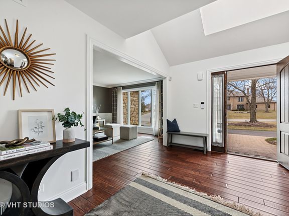 This simply stunning ranch has is ALL! Step inside this light filled home boasting an open floor plan perfect for everyday living and entertaining with volume ceilings, skylights, beautiful hardwood floors, custom moldings and designer touches throughout. Magnificent family room with gas fireplace and picturesque views is sure to be a favorite gathering space and opens to the sun filled kitchen and eating area. Chef's will delight in the gourmet kitchen featuring all the bells and whistles with top-of-the-line appliances, custom cabinetry, marble counters, island with breakfast bar and French doors leading to the patio. Incredible primary suite is a true retreat with spa-like bath, large sitting room and two incredible walk-in closets! Three spacious secondary bedrooms with walk-in closets and two additional full baths provide great living space. Beautifully appointed living and dining rooms offer more entertaining options while the laundry, mud and powder rooms allow for easy one level living. The finished lower level is outstanding with rec, game and play rooms perfect for enjoying family game nights. A custom wet bar and temperature controlled wine cellar make entertaining a breeze while additional spaces offer tons of flexibility for your lifestyle including a 5th bedroom, full bath, office / exercise room and media room perfect for a home theater. Enjoy dining al fresco on the patio with outdoor grilling station, s'mores around the firepit or playing in the sprawling rear yard. Beautifully updated throughout with a new roof in 2021, three car heated garage and circular drive (2022) all set on a nearly 1-acre lot in desirable Braymore Hills with city sewer & water, Barrington schools and just minutes to town, train, restaurants, shopping and expressways. Enjoy ranch style living at its finest!