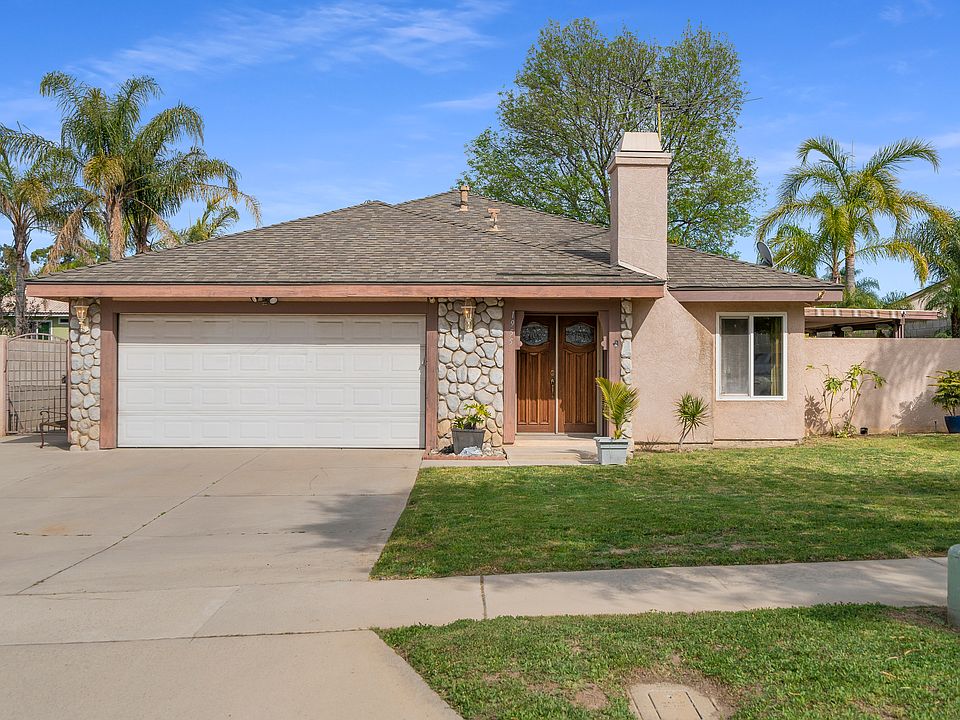 This single story pool home is located in a quiet and commuter friendly area of Corona. The home features 3 bedrooms, and two baths (with bathtub in guest bath). Double door entry, spacious living room wired for surround (Bose speakers included), granite counters in kitchen, whole house fan, newer double pane windows and sliders, very large covered outdoor patio that is perfect for entertaining, sparkling swimming pool with spa. There is also a large storage shed (with electrical) for storing pool toys. A pergola off the master bedroom slider finishes off the backyard ambiance. Side yard is fenced and is perfect for dog run, or additional storage. Located in the award winning Corona-Norco Unified School district and commuter friendly. Bring all offers!