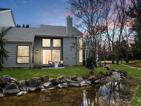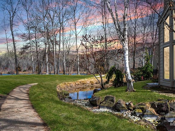 Nestled amidst the peaceful ambiance of the Boise River, enjoy unparalleled views of water & wildlife in this rare end-unit with two patios surrounded by tranquil, flowing water. Soaring ceilings & expansive windows create an elegant yet inviting atmosphere complemented by soothing, neutral tones & stunning luxury plank flooring throughout. Thoughtfully designed open-concept layout flows seamlessly between the stylishly updated kitchen boasting striking quartz counters overlooking the light-filled great room accented by a warm, stone surround gas fireplace. Wake to an idyllic natural setting from the main-level master offering direct access to private patio space. Custom wood beams add character to a generous loft space ideal for a media room, home office or third bedroom! Indulge in the carefree lock and leave lifestyle with HOA provided exterior maintenance (roof, paint, siding, windows), landscaping, snow removal and flood insurance with convenient amenities including a clubhouse, pool, & tennis courts!