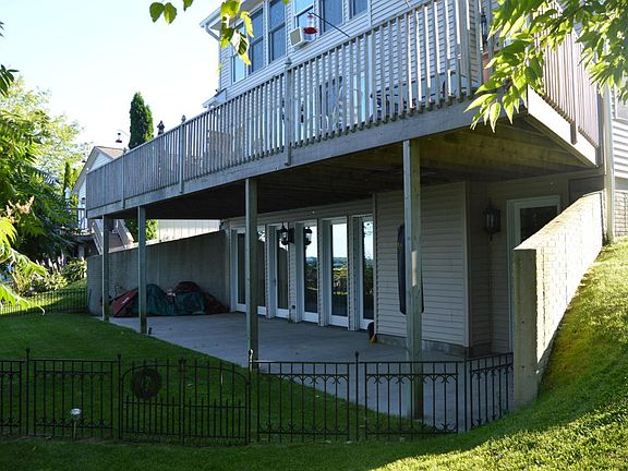 Excellent condition newer home with endless eastward views from throughout the house. The entire upper level is a private master suite with plenty of storage and a lakeview garden tub. Floor to ceiling windows bring the lake and the sunrise right into the room with you. The ground floor also has floor to ceiling windows and a great lakeside deck providing relaxing elevated views of the sunrise and the lake. At night you can watch freighters on the horizon. The downstairs walks out to a private yard and the steps to the beach side gazebo. Crystal clear water and gently lapping waves greet you at the shore. 2 car attached garage. The property adjoins 9 hole Greenbush Golf Course which has dinning as well.