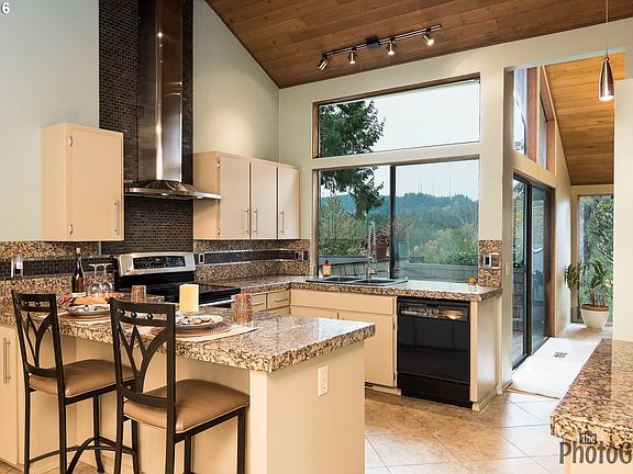 Beautiful NW Contemporary with vaulted cedar ceilings. Kitchen and all bathrooms wonderfully updated. Granite, tile, bamboo floors, skylights & fireplace. Flexible floor plan with formal & informal spaces. Enjoy gorgeous views of the valley from the living room & spacious decks. Newer heat pump & great storage space on lower level.