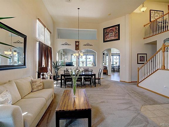 180 DEGREE UNOBSTRUCTED VIEW OF THE MOUNTAIN RANGE!! Wake up to breathtaking mountain views from your master suite and end the day watching fiery sunsets from your hot tub! This home is located on Ute Creek Golf Course across from the practice green and out of range errant golf balls. Main level has semi-formal Living and Dining Rooms, Great Room with cozy gas fireplace and wall of windows looking out to mountain range and Golf Course. Gourmet Kitchen features granite-slab countertops, center island with additional seating, and large casual dining area. New black stainless steel appliances include 5 burner double convection oven with dehydrating and proofing functions, 42 decibel dishwasher and 3 door 26 cu ft fridge with 2 ice makers. Main-level has Study with private access to back deck. Upper level has Loft, and 3 Bedrooms, including the Master, which features a private sitting suite with gas fireplace, and 5-piece bathroom with dual vanities. 1800 sqft unfinished basement, ready to accommodate your family's needs! Home will never be sweeter than when you unwind on the expansive back deck with views from the Flatirons to Long's Peak that will consistently take your breath away! Furniture and art not included but available.