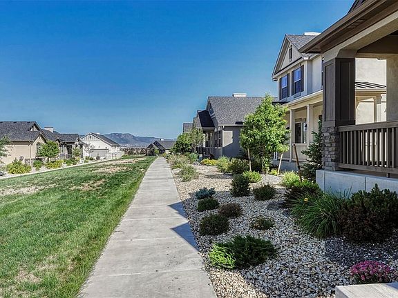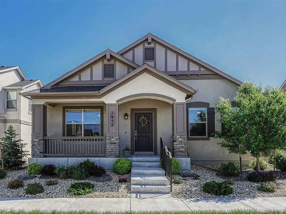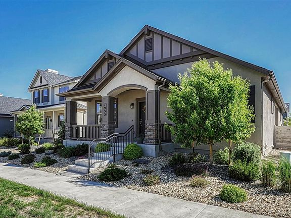 Fabulous, LIKE NEW, main level living home in the heart of Flying Horse! Located across from an incredible neighborhood park and green area! Low maintenance stucco with expansive front porch! Open floor plan ranch home with gleaming laminate wood floors expanding through living room, kitchen, dining area, and hallways. Luxury kitchen boasts white 42" cabinets, full pantry, coffee, and wine bar! Separate dining area with walk out to covered, private, custom patio! Patio has gas plumb ready for summer bbqs! Pots with drip lines are included! Spacious primary bedroom with attached bathroom, dual vanity, quartz counters, and walk in closet! Secondary full bathroom with custom tile and quartz vanity top. Two additional bedrooms at the back of home. Convenient Murphy bed/desk is included! Spacious, attached, two car garage opens to the alley. Located in the award winning D20 school district! Flying Horse has been voted the #1 community in Colorado Springs four years in a row! Walking paths, green spaces, parks, and wonderful restaurants and shopping within walking distance! Close to AFA, I-25, commute to Denver, Castle Rock, or Colorado Springs!