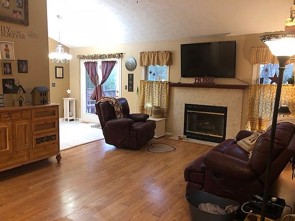 Here is the perfect home on the east side. Beautifully decorated and maintained with newer laminate wood floors throughout that are rated for 20 years. They look like real wood . Vaulted ceiling great room with gas fireplace added. Kitchen has been updated with new counter tops, sink/faucet and lots of under cabinet lighting. Kitchen/dining area has vaulted ceiling also. Heat pump and water heater are less than 10 y/o. Priced to sell quickly so don???t miss out on this one. Average electric $150. Gas fireplace. CALL Jane TODAY!