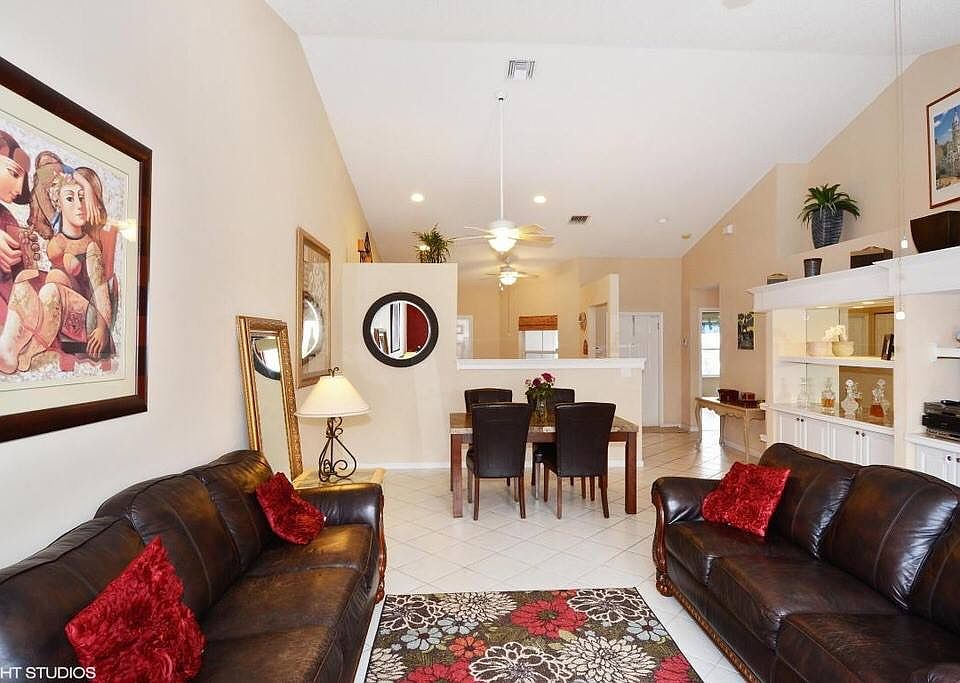 Beautiful and spacious townhome with open floor plan,vaulted ceilings, updated and opened kitchen, custom built in wall unit/drybar, diagonal tile throughout living areas, and pergo flooring in bedrooms. Quality tenant in place and would be happy to stay. Family friendly community with a fabulous clubhouse, pool, tennis, community room, kitchen, and fitness center. 24 hr manned and gated security. All located within walking distance to all of the many restaurants and shops at Wellington Green!