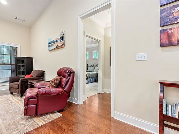 This welcoming 3 bed, 2.5 bath one story home features an amazing split floorplan! Boasting beautiful hardwood floors, wood burning fireplace and open concept living. Enjoy the large kitchen with stainless steel appliances, bar top seating and eat in breakfast area. The primary bedroom offers his and her closets with an ensuite bath featuring a soaking tub, large walk-in shower and separate vanities. Relax on the screened-in porch showcasing a vaulted ceiling and delight in the peaceful fenced in backyard. Experience the wonderful neighborhood amenities which include two pools, a playground, sidewalks, and seasonal events for residents! Welcome to your new retreat in the sought-after Camden Ridge.