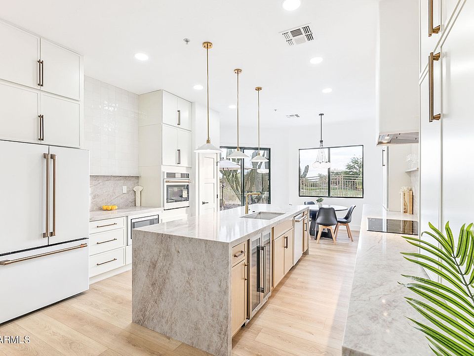 Experience modern living in this fully remodeled 3 bed, 2 bath, 1,834 sq. ft. townhome in the exclusive gated community of Cachet at Grayhawk. A grand circular foyer with soaring ceilings leads to a bright living area with fireplace and a chef's kitchen featuring quartz counters, brand new state of the art appliances, and an oversized island. Luxury designer tile floors add elegance throughout. The split floor plan offers a luxurious primary suite with spa-style bath and custom walk-in closet. Step outside to a covered patio with sweeping golf course views of Hole 4 on the Talon. Beyond your door, enjoy resort-style amenities, plus you're just minutes from Scottsdale Quarter and Desert Ridge—home to endless dining, shopping, entertainment & more.