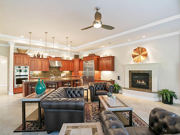 Located on the 9th hole in the prestigious, safe & gated community of Tierra Oaks sits the San Vincente Masterpiece. Step into a private retreat though a majestic entryway & let the formal living & dining spaces create a flawless first impression. The bright, open kitchen has granite countertops, custom cabinetry, stainless steel appliances, stand-alone wine bar & an adjacent family room ready to entertain. The extravagant owner's suite features an en-suite bathroom with soaking tub flanked by gorgeous pillars, a bidet, dual walk-in closets, an expansive vanity & built-in wine/coffee bar. Glass doors open onto an expansive back patio to soak in the tranquility of nature & nearly an acre of landscaped gardens & a peaceful water feature. The 2nd owner's-style suite is in a separate wing.
