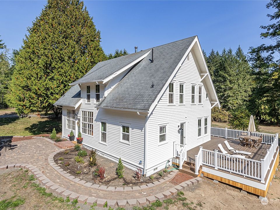1916 Classic Farmhouse with timeless elegance and recent modern updates. Home has 3 bedrooms in the main home and separate living quarters above the garage with kitchen, 1 bed, 1.25 bath and living area. Perfectly situated on 4.7 acres within the city limits of Poulsbo. Brand new updates include gourmet kitchen, stainless appliances, windows, doors, fixtures, interior and exterior paint, composite deck and new roof on garage. This property offers the best of both worlds with privacy and convenience of being close to town, shopping and schools. Don't miss this rare opportunity to own a slice of Poulsbo's heritage that offers the perfect blend of past and present. Property is zoned residential low which may allow for future development.