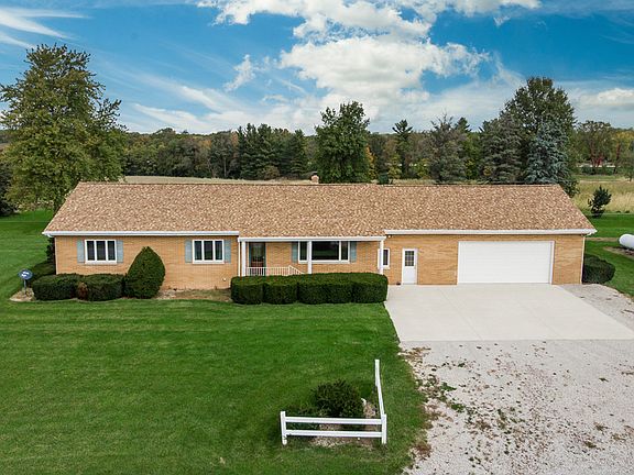 If you are searching for a rare opportunity, look no further than this country home on 9 acres, three bedroom, all brick ranch with so many updates. Such love and pride within this home. Updated kitchen with beautiful cherry cabinets, Viking appliances, walk in pantry... very open and spacious for your family entertaining. Great views to the back yard acreage. All appliances do remain! Large bedrooms throughout with abundance of closets and storage! Two full baths and 1/2 bath, main floor laundry. Finish lower level with a rec room, family room with wet bar and Office. This home features an oversize two car garage for extra storage, and or to work on any vehicles/hobbies. This home also features a whole house generator. Well is less than 5 years, septic was pumped a year ago.. 90% efficient Furnace, roof new in 2022, updated windows.... The back of property has pass through to Parklands that was originally used years ago to move cattle under the road. Every view throughout this home you can see miles of country living! Don't miss out on this once in a lifetime opportunity to live in the country! There is a CRP contract on approx 5.61 acre that receives income of $204.19 an acre. If buyer does not want this the contract can be cancelled upon the sale of the home.
