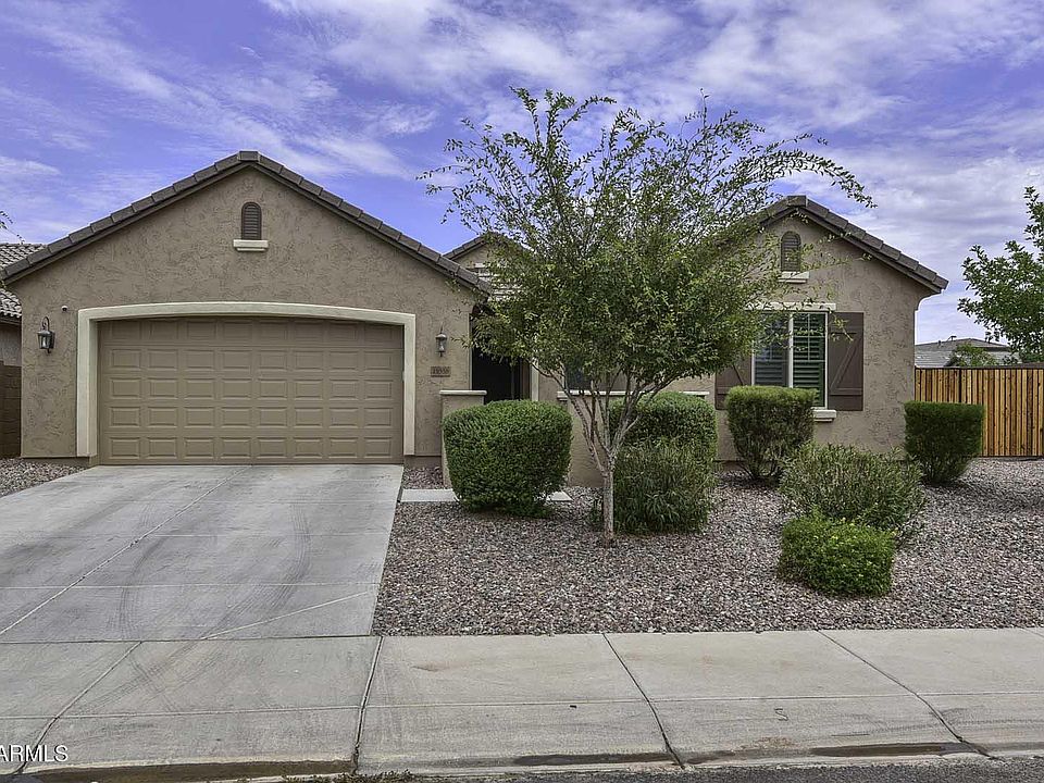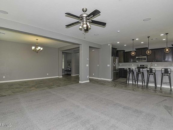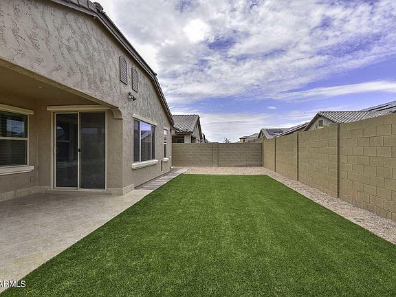 Will not last! Highly efficient, beautiful, single level home has 4 bedrooms and 3 bathrooms with a flex room that can be a media room, game room, study, or office. This is a popular split floor-plan. The kitchen is stunning with mocha cabinetry, stainless appliance and an island with pendant lighting. Quartz counters and a spacious pantry and Reverse Osmosis. Great room concept with formal dining space that could be multipurpose. The master bedroom has dual walk-in closets and separate tub and shower. This corner lot provides a large side yard with RV gate. Synthetic grass covers much of the backyard and there is a large covered patio. Three car tandem garage with hanging storage, soft water loop and epoxy flooring.