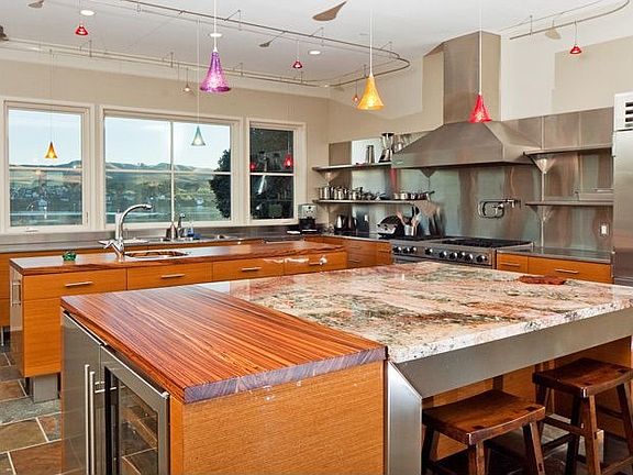Superb location atop Bay Flat Rd, Views of the Harbor, Marina & Bay to the east, the Ocean & Jetty to the west, the finest materials were used in the construction, Master Bath has Steam Shower & a Jetted Tub, Long Redwood Burl Counter, Chefs Kitchen with ALL the Best Appliances, Viking, Subzero, Stainless Steel Sinks & Counters, Zebra Wood Counter also. French Doors in each Bedroom with Ceiling Fans, Fireplaces in the Living Room and the Master