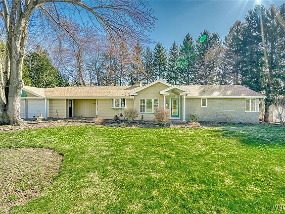 SPACIOUS, ranch-style home with a custom floor plan and generous room sizes. Main level includes a large kitchen with built-in range and Gagenau oven, a German-made oven especially esteemed among culinary enthusiasts and professional chefs. Also, Corian countertops, ceramic flooring and backsplash, custom cabinetry, and lighting. A bright dinette with western exposure complements the formal dining room, which features eastern exposure, a double-sided gas fireplace, and inlaid hardwood flooring. The dramatic front entry includes a sunburst window and stately interior/exterior columns, leading to a sunken living room with built-in bookcases and shared gas fireplace. A separate family room offers hardwood floors, wood-paneled walls, and a full wall of east-facing windows. Modern bathrooms feature designer ceramic finishes, both tub and shower. Check out the whole house fan, a ceiling mounted ventilation system designed to cool the entire house naturally. The full walk-out basement includes a finished rec room and a dedicated potting room with sink. A standout feature is the 294 SF sunroom with skylights, inlaid ceramic flooring, and custom artwork. Set on .76 acres with 165' of frontage, mature landscaping and attached 2-car garage, this custom designed ranch offers a functional layout with high quality finishes throughout. Seller accepting Cash, Conventional, FHA and VA finance. Submit offers NOW sale closes Saturday, 4/12 @ 5PM.