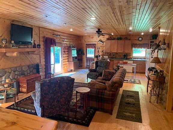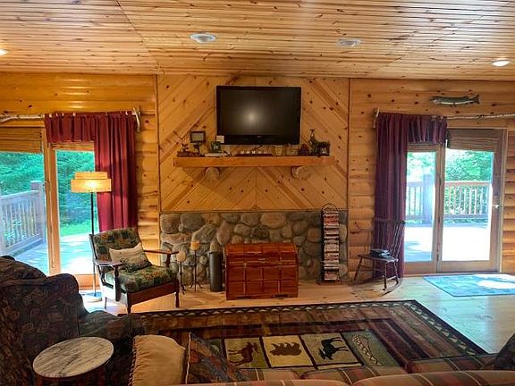 Get away from it all in this 2 bedroom, 1 bath cabin in the woods! The home sits on 11.6 wooded acres and it is adjacent to the Nicolet National Forest! The home offers over 1100 sq. ft of living space. The interior is all done in tongue and groove pine so it has that "Northwoods Feel". The kitchen is fully equipped with updated appliances and dishwasher. The bedrooms have built in bunk beds in addition to full-sized beds so there is plenty of sleeping space. There is a wraparound deck overlooking your own private wilderness. There is also a 12' x 30' attached garage. Anvil Lake is across the street and boat launch is about a mile away. Eagle River is under 15 minutes away too. It is in great condition and a wonderful year-round cabin!